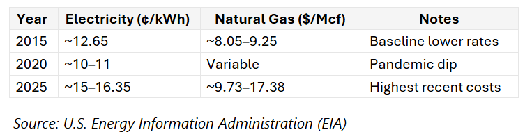 Colorado’s residential electricity rates have increased 25–35% over the past decade, often outpacing inflation. Average rates rose from 12¢/kWh in 2015 to 15–16¢/kWh in 2025. Efficiency measures like the 2024 IECC are supposed to help homeowners mitigate rising utility costs.